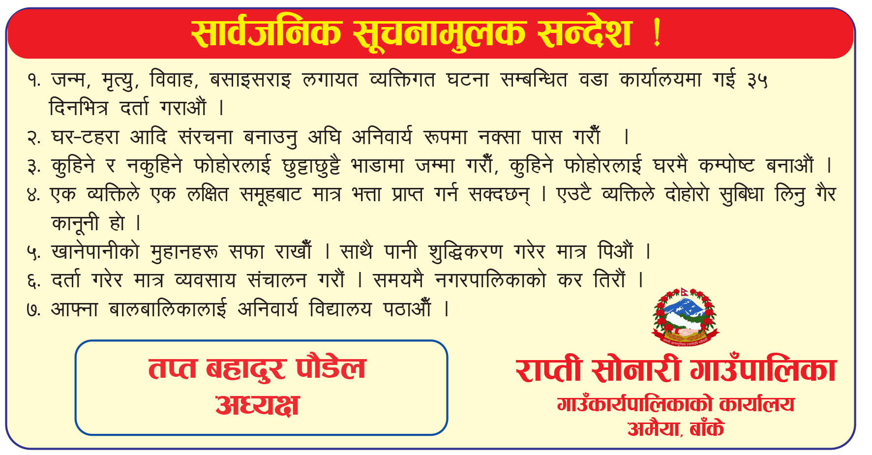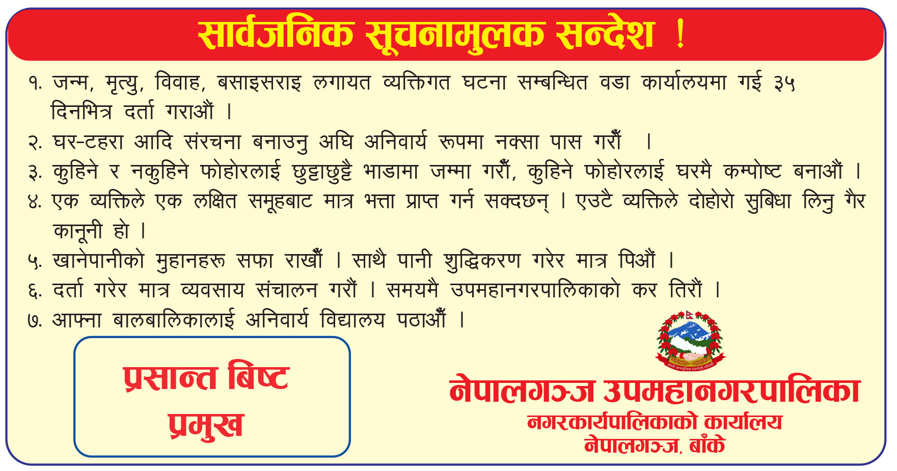 अंग्रेजी नयाँ वर्ष २०२६ को अवसरमा शुभकामना दिँदै उनले भनेका छन्– ‘देश र जनताप्रतिको जिम्मेवारीप्रति सचेत रहँदै नेपाल कम्युनिस्ट पार्टीले आफ्ना सबल र दुर्बल पक्षहरूको समीक्षासहित सच्चिएर अघि बढ्ने प्रतिबद्धतालाई व्यवहारमा उतार्दै अघि बढिरहेको छ। यथास्थितिमा सीमित रहने सोच र परिवर्तनको चाहनाबिचको सङ्घर्ष अझै जारी छ । अहिले हामी जिम्मेवार ढङ्गले परिवर्तनको पक्षमा अघि बढ्नुपर्ने आवश्यकता छ।’